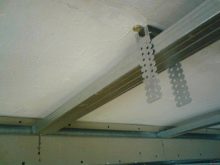 الجزء العلوي من النظام عبارة عن لوح خشبي به فتحات في الجوانب. من خلال شريط به فتحات ، يتم تثبيت القضيب على السقف بمسامير أو مسامير. يمكن أن يتراوح طول المنتجات من 10 إلى 20 سم ، مما يسمح لك بتركيب الألواح بالمستوى المطلوب.