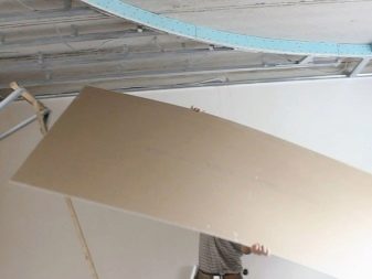خيار آخر غير مكلف GKL – السقف. يختلف عن الإصدار السابق بسماكة أصغر. هذا هو أكثر ملاءمة للاستخدام للأقواس ، والهياكل المنحنية الأخرى..