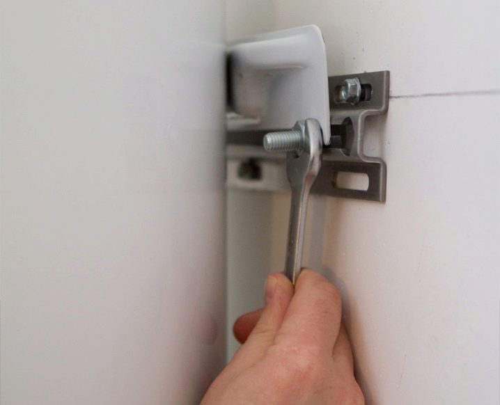 الجزء السفلي هو قفل. باستخدام هذه العقدة ، يتم تثبيت العنصر على الملف الشخصي والشريط به ثقوب. يسمح لك اللوح بمحاذاة عنصر الإطار بدقة وإصلاحه بشكل آمن. يشبه المرفق بالتعليق المشبك – وهو حل متين وسهل الاستخدام.