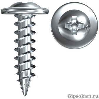 بالنسبة للإطار المعدني ، يتم تحديد مسامير ملولبة ذات خطوة خيوط متكررة. سمك المواد المعدنية يمكن أن يتجاوز 0.7 مم. يتم تحديد مسامير هذا الملف الشخصي باستخدام مثقاب في النهاية وليس بنقطة عادية. تستخدم البراغي المدببة في التشكيلات التي يزيد سمكها عن 2.2 مم.