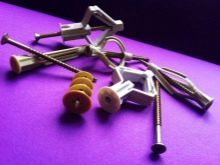 إذا كان هيكل اللوح الجصي مثبتًا في السقف ، فمن الأفضل اختيار وتد مصنوع من المعدن المولي. كما أنها مناسبة للعمل مع الهياكل المجوفة..