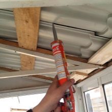 بالنسبة لترتيب الأسقف ، حيث تعمل الألواح الخشبية أو الألواح كمواد تسقيف ، فمن الممكن إصلاح الشقوق والعيوب الأخرى في الطلاء. بالإضافة إلى ذلك ، يتم سد الشقوق في الطابق السفلي وأساسات المباني بمركب سيليكون..