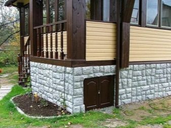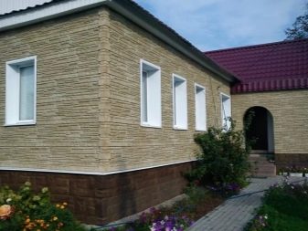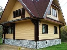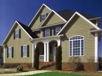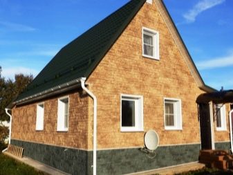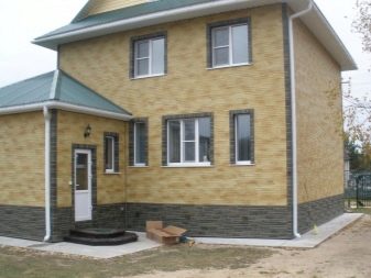 - في معظم الحالات ، يتم اختيار انحياز الطابق السفلي بعدة ظلال أغمق من ظلال الجدران ، ومن أجل “ربط” كسوة المنزل معًا ، فإن بعض عناصر الواجهة ، وكذلك السقف ، يكون لها نفس لون القبو.