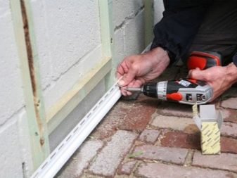 بالنسبة إلى تقليم القاعدة ، قد تكون هناك حاجة أيضًا إلى ملف تعريف J, الذي يستخدم في تصميم الزوايا الداخلية ، وكذلك عند التخلي عن شريط البداية على الواجهة ، والوقوف على السطح غير المستوي للمنزل. في هذه الحالة ، يجب قطع الجانب ، بحيث يبقى بدون تثبيت خطافات. يتم التثبيت عن طريق إدخال الألواح في ملف تعريف J ثابت ومقطع مسبقًا. يمكنك حساب العدد المطلوب من هذه الملفات الشخصية ، مع الأخذ في الاعتبار طول الملف الشخصي (عادة 3.66 م) وطول الأقسام الموجودة على الواجهة المغلفة بملف التعريف J..