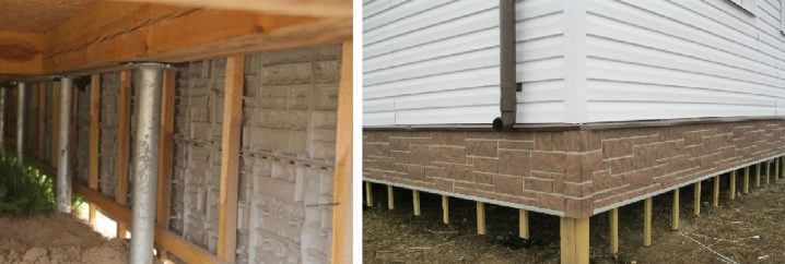 عند التثبيت على أكوام لولبية ، يتم الردم أولاً (القضاء على الفراغ بين الأرض وقاع المنزل). عادة ما يكون هذا الجزء معزولًا ومقاومًا للماء ومنجد بألواح خشبية. بعد ذلك ، يتم معالجة السطح بالمطهرات ، ثم يمكن تغليفه بالانحياز. إذا كان سطح الألواح مسطحًا ، فيمكن ربط الألواح بها مباشرةً بدون خراطة. إذا لم يكن الأمر كذلك ، فسيتم تنفيذ الخراطة التي يتم إرفاق الألواح عليها..
