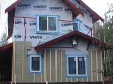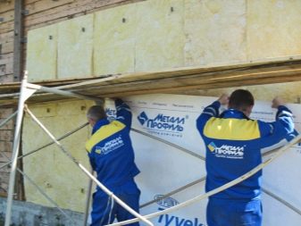 بعد وضع طبقات العزل ، يتم تغطية الجدران بغشاء مقاوم للرياح. ترتبط قطعه بشريط البناء أو يتم تثبيتها على عناصر الغلاف باستخدام دباسة البناء.