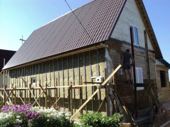 إذا كانت جدران المنزل غير متساوية للغاية ، فسيكون من الضروري في بعض الأماكن تقوية البطانة الخشبية أسفل الصندوق. يعتمد التثبيت الرأسي أو الأفقي للأدلة على الطريقة التي تخطط بها لربط انحياز في المستقبل. إذا كان الوضع الرأسي (الطريقة القياسية) ، فيجب تثبيت القضبان أفقيًا. يمكن تثبيت الخراطة بمسامير أو مسامير ، ولتعزيز إضافي يمكن تثبيتها بزوايا معدنية. عند تثبيت الأدلة ، ضع في الاعتبار الخلوص (حتى 5 سم) للتهوية.