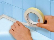 - يوصي الخبراء بمعالجة التقاطع بعامل مانع لتسرب المياه ، ثم لصق الشريط على التركيبة الرطبة.