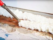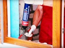 رغوة البولي يوريثان هي مادة صلبة لا تسمح بتكوين تشققات وتسمح لك بإصلاح بعض عناصر البناء في الهيكل. العيب الوحيد للرغوة هو حقيقة أنه يتم توفيرها بشكل سيئ من العلبة ، لذلك من الأفضل استخدام البنادق الخاصة لهذه الأغراض..