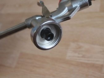 عند العمل بمسدس لرغوة البولي يوريثان ، قد تظهر بعض المشكلات التي ترتبط ارتباطًا مباشرًا بإزعاج استخدام الهيكل. يجب التأكد من أن الأسطوانة دائمًا في وضع رأسي بالنسبة لأداة البناء. خلاف ذلك ، فإن هذا يعقد استخدام الأداة بشكل كبير وقد يتسبب في تلفها. وللتخلص من هذا العيب ، غالبًا ما تضطر إلى الاستعانة بأنبوب خاص مصمم لإطالة المسدس..