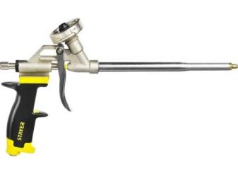- مسدسات معدنية مطلية بالتفلون. هذه المنتجات غالية الثمن وعادة ما تكون مخصصة للاستخدام المهني. الميزة المميزة لهذه النماذج هي سهولة تنظيفها من بقايا رغوة البولي يوريثان..