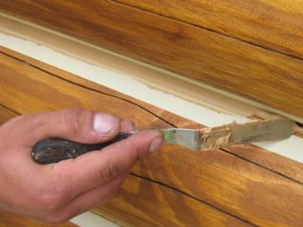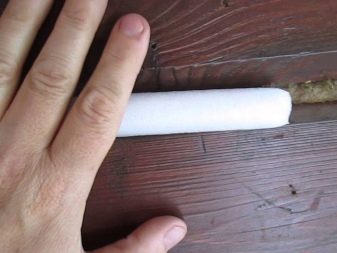 - بالنسبة للعيوب كبيرة الحجم على الخشب ، قبل معالجة الفجوة باستخدام مادة مانعة للتسرب ، من الضروري وضع حزمة من رغوة البولي إيثيلين ، وبفضل ذلك يمكنك التوفير في استهلاك التركيبة.