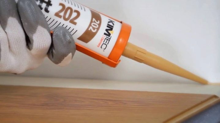 يستخدم مانع التسرب ذو الأساس الأكريلي ليس فقط كوسيلة لإغلاق وإزالة التشققات. يمكن أن يعمل أيضًا كغراء للبناء ، على سبيل المثال ، لتثبيت الألواح والقوالب في السقف. لهذا ، يتم تطبيق التركيبة مباشرة على الجزء الخلفي من العنصر الزخرفي ، وسطح الجدار مبلل قليلاً بالماء. بعد ذلك ، يكفي إرفاق القاعدة أو الرغيف الفرنسي بالحائط والضغط عليه قليلاً.