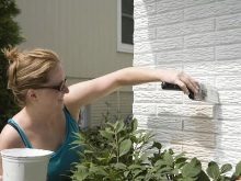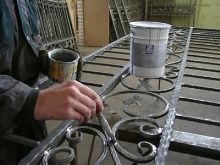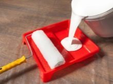 - يمكنك تطبيق الطلاء بأي أداة مناسبة: فرشاة ، بكرة ، مسدس رش. ومع ذلك ، فمن الأنسب استخدام الأسطوانة للعمل. الأماكن التي يصعب الوصول إليها مطلية بفرشاة. إذا تم معالجة السطح بمسدس رش ، فيجب أولاً تخفيف المينا بروح بيضاء (لا تزيد عن 10٪ من إجمالي كمية الصبغة).