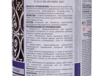 يُسمح بتخفيف المينا نفسه بمزيج من الزيلين مع الروح البيضاء حتى 70 ٪. في الوقت نفسه ، لا يمكن أن تتجاوز نسبة الروح البيضاء في التركيبة المخففة 50٪. درجات حرارة هواء التشغيل الموصى بها – من +5 إلى + 30 درجة ، الرطوبة النسبية – 80٪ كحد أقصى.