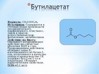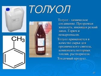 المكون الرئيسي هو التولوين ، وهو مذيب صناعي. كنسبة مئوية ، تبلغ حصتها 60٪ من الحجم الإجمالي. كما أنه يحتوي على أسيتات البوتيل (مذيب عضوي ، 30٪ من الإجمالي) والزيلين (هيدروكربونات عطرية ، 10٪).