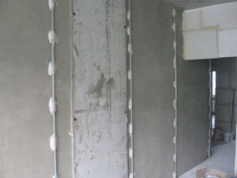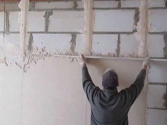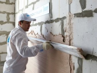 - تركيب منارات. على الحائط بخطوة 0.3 متر ، يتم تشكيل خطوط متقطعة رأسية من قوالب فردية لخليط هاون سميك ، ثم يتم ضغطها في مقاطع المنارة. ثم يصطفون في مستوى واحد..