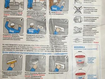 قبل تحضير حل العمل ، تأكد من قراءة التعليمات الموجودة على الجزء الخلفي من حقيبة Rotband. تتطلب الحزمة الواحدة التي تزن 30 كجم من مركب التسوية حوالي 18 لترًا من السائل. لعجن خليط الملاط ، يُسكب الحجم المطلوب من الماء في وعاء كبير ويُسكب المسحوق في أجزاء ، وخلط المحتويات بخلاط البناء للحصول على كتلة متجانسة بدون شوائب متكتلة.