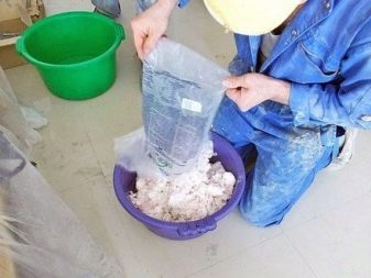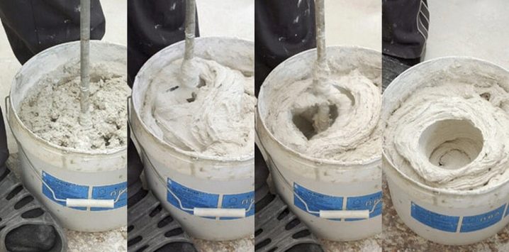 إذا لزم الأمر ، يجوز إضافة الخليط الجاف إلى الخزان ، ويمكنك أيضًا إضافة الماء. بعد إضافة المكونات إلى المحلول ، انتظر لمدة 5-6 دقائق ، واتركها تنضج ، ثم قم أخيرًا بخلط كتلة الجص. يجب أن يؤخذ في الاعتبار أن مباشرة في عملية العمل مع الجص ، فإن إضافة مسحوق أو ماء جزئيًا إلى خليط الهاون أمر غير مقبول تمامًا.