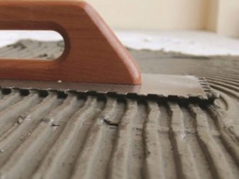يجب ألا تزيد طبقة العمل عن 18 مم ، ويجب ألا يزيد سمكها عن 3.5 مم. إذا كنت تعمل باستخدام ملعقة صغيرة (6.2 × 6.2 سم) ، فسيكون استهلاك التركيبة من 3 إلى 4.8 كجم لكل متر مربع ، أي أنه لا يمكن أن تكون أكثر من 6 أمتار مربعة كافية لحزمة واحدة. عند العمل باستخدام ملعقة ذات أسنان (أبعاد 3.1×3.1 مم) ، سيتم إنفاق حوالي 2 كجم لكل متر مربع. إذا كانت الأسنان أكبر بمرتين ، فإن استهلاك الغراء يزيد إلى 3.5 كجم. يجب تحضير المادة بطريقة يمكن استهلاكها في وقت قصير..