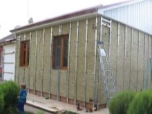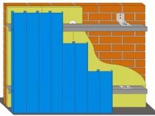 ثم يتم تثبيت قفص على الحائط لتثبيت الألواح.. ولكن يوصى أيضًا بملء الجدار بالخراطة بالعزل والعزل المائي. للقيام بذلك ، يمكنك استخدام الصوف الزجاجي أو الصوف المعدني أو الرغوة أو البوليسترين الموسع..