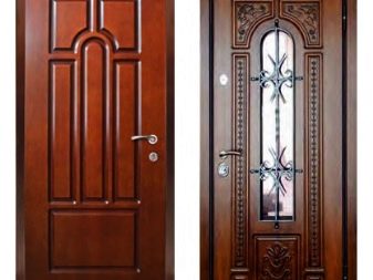 - استخدام ألواح MDF, تتكون من نشارة مضغوطة ، ستوفر خصائص عزل عالية للحرارة والصوت للباب وتعطيه مظهرًا جميلًا. الألواح مكسوّة ومغلفة. بصفته صفحًا ، يتم استخدام فيلم PVC ، والذي يتوفر في مجموعة واسعة من الألوان ، وبفضل نمط النسيج ، فإنه يقلد الخشب الطبيعي تمامًا. تتكون الألواح المكسوة من ألواح خشبية رقيقة مثبتة مع دعامة خاصة. خارجياً ، لا يمكن تمييز الأبواب المزينة بهذه الألواح عن تقليم الخشب الطبيعي ، لكنها أرخص بكثير وأقل وزنًا ؛