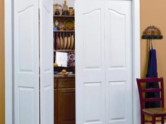 تستخدم هذه الأبواب أيضًا كأقسام للأثاث. يتم استخدامها أيضًا بدلاً من الشاشات في غرف النوم ودور الحضانة وغرف الملابس. إنها تسمح لك بحل مشكلة تقسيم المناطق. يتم شراء هذه الأبواب للتثبيت في أي عرض للممر ، حتى الأضيق. هذا هو السبب في أنها مثالية لحجرة المؤن في شقة..