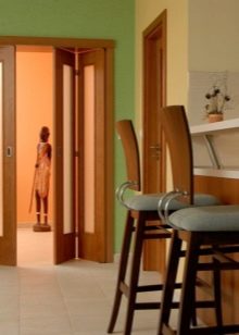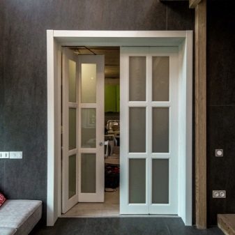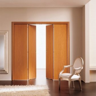 هذا نموذج مثالي للغرف الفسيحة ذات الممرات الواسعة. الأبواب القابلة للطي هي نماذج ذات ضلفتين. لديهم أبواب مزدوجة يمكن تقسيمها أيضًا إلى أقسام بأحجام مختلفة. تُطوى هذه الأبواب مثل الكتاب ، لذلك حصل التصميم على نفس الاسم.