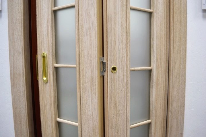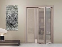 - لضمان صمت تام ، تحتوي هذه التصميمات على أغلاق. بفضلهم ، فإن الباب القابل للطي قادر على الانزلاق بسلاسة على طول الموجهات.