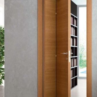 - بالإضافة إلى ذلك ، فإن ميزة هذه الأبواب هي أنها عادة ما تحتوي على محددات خاصة. إنها تسمح لك بإصلاح الباب في الموضع المطلوب. لذلك ، يمكنك الدخول إلى الغرفة بأيدي مشغولة ، ولن يزعجك شيء..