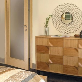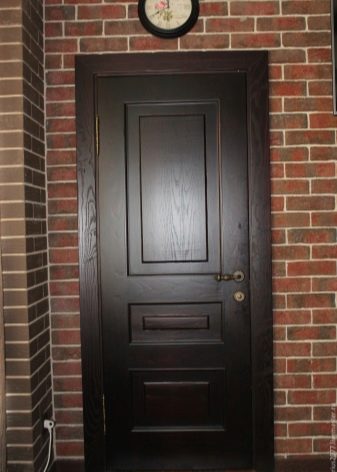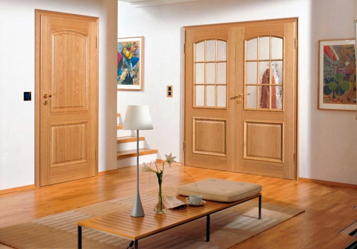 مع باب مصنوع من الخشب الطبيعي ، يمكنك تنشيط المقصورة الداخلية وجعلها أكثر جاذبية. بالإضافة إلى ذلك ، لا يسع المرء إلا أن يشير إلى أن الغبار لا يتراكم على سطح البلوط. هذه المادة لا تخضع للتعفن والجفاف.