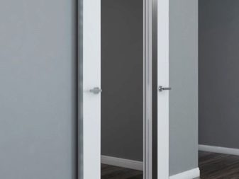 في بعض الحالات ، يمكن أن تكون ورقة الباب مصنوعة من مرآة ، ولكن هذا نادر جدًا عند تزيين الأبواب الداخلية بسبب القوة المنخفضة لطلاء المرآة.