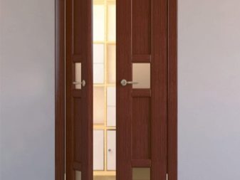 - الأبواب “مدمجة” هي أيضا ذات الصدفتين. هذه نسخة إيطالية ، أصبحت شائعة بسبب سهولة الفتح: عند الفتح ، تطوى الوشاح إلى جانب واحد وتضغط على سطح الجدار ، ولا تشغل مساحة إضافية على الإطلاق.