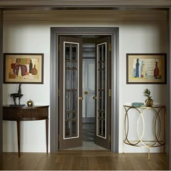 إن اختيار الأبواب ذات الضلفتين ليس بالأمر الصعب كما قد يبدو للوهلة الأولى. يتم اختيارهم في المرحلة النهائية من التجديد ، عندما تكون الغرفة قد تم تزيينها من الناحية المفاهيمية بالفعل ويبقى وضع اللمسات الأخيرة على الصورة..