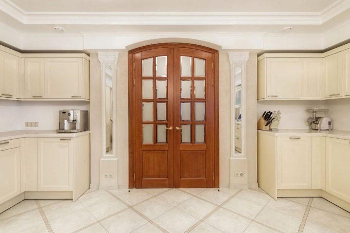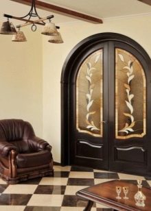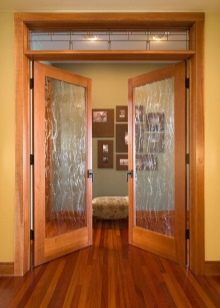 في هذه الحالة ، اختر الأبواب الزجاجية كليًا أو جزئيًا. يوسع الزجاج بصريًا مساحة المعيشة ويجعلها خفيفة. في كثير من الأحيان ، يتم عمل الفتحات على شكل قوس ، ثم يتم تقريب كل من اللوحة القماشية والمربع.
