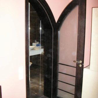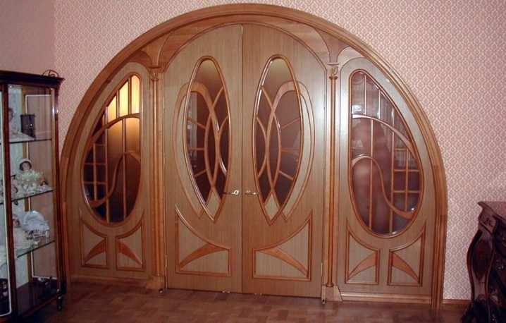 تختلف الأبواب في الشكل: مستطيلة – قياسية ، مقوسة – غير قياسية. في كثير من الأحيان ، تتطلب الفتحات المقوسة تصنيع أقمشة مصنوعة حسب الطلب ، لأن الشركات المصنعة لا تصنع لوحات نصف دائرية للمستودع. من المهم أخذ القياسات بشكل صحيح من الفتحة المستديرة وإنشاء باب مثالي من حيث الشكل والمعلمات ، لأنه من المعروف أن زاوية الانحناء للفتحة ستختلف مع عرض الفتح 60 و 90 سم.