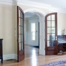 يبدو الباب الأمامي المكون من درفتين لمنزل ريفي رائعًا ، خاصةً إذا كان شكله يشبه القوس. ترتبط النماذج المقوسة دائمًا بالكلاسيكيات والتكلفة العالية ، بالإضافة إلى الوظائف الواسعة ، فهي تتمتع بجماليات خارجية..