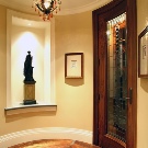 يبدو الباب المرتفع والضيق للغاية أصليًا وعمليًا إذا اخترت نظام فتح دوار أو نظام محوري بدلاً من الباب المتأرجح.