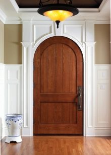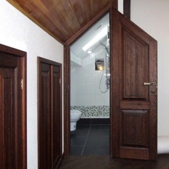 يختلف حجم الفتحات عن المعايير المقبولة عمومًا: سيتعين عليك عمل أبواب للطلب. تتميز اللوحات الخشبية بالكامل أو المصنوعة من الخشب الصلب بنسبة 100٪ بجودة ووظائف وتطبيقات عملية ممتازة ، وتخدم لمدة 50 عامًا تقريبًا ، لكنها غالية الثمن. بديل – مكسو بالقشرة ، بداخله خشب صنوبر صلب ، خارجي – قشرة طبيعية. لا تختلف هذه اللوحة من الخارج عن الخشب الصلب ، لكنها تختلف اختلافًا كبيرًا في الوزن والتكلفة. ميزة القشرة هي ملاءمتها للبيئة ومظهرها الجمالي. ناقص – بأعلى سعر ممكن لمجموعة من الأبواب.