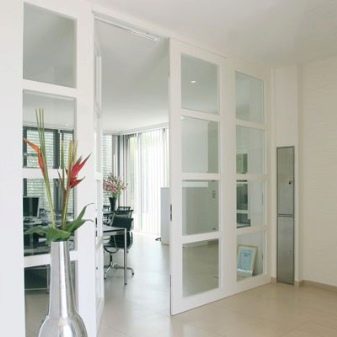 إذا كانت الفتحات قياسية في الارتفاع والعرض ، فسيتعين عليك الانتباه إلى أنظمة الفتح التي ستوفر مساحة فيها: أبواب منزلقة ، قابلة للطي ، دوارة. يمكن توفير باب منزلق من ضلفة واحدة أو درفتين إذا كان عرض الحائط أكبر من عرض الفتحة ، أي أنه سيكون من الممكن “فتح الباب المتأرجح” أو دفع الباب إلى هذه المنطقة. إذا لم يكن هناك مساحة إضافية لورقة منزلقة على الحائط ، فإن الاختيار يقع على أبواب قابلة للطي أو دوارة. تتكون الورقة القابلة للطي من 2-3 أوراق ، والتي تشكل بابًا كاملًا. عيبه الرئيسي هو انخفاض مستوى الضجيج والعزل الحراري. بالإضافة إلى ذلك ، يتم طي القماش مثل “الأكورديون” ويحتل جزءًا من الفتحة.