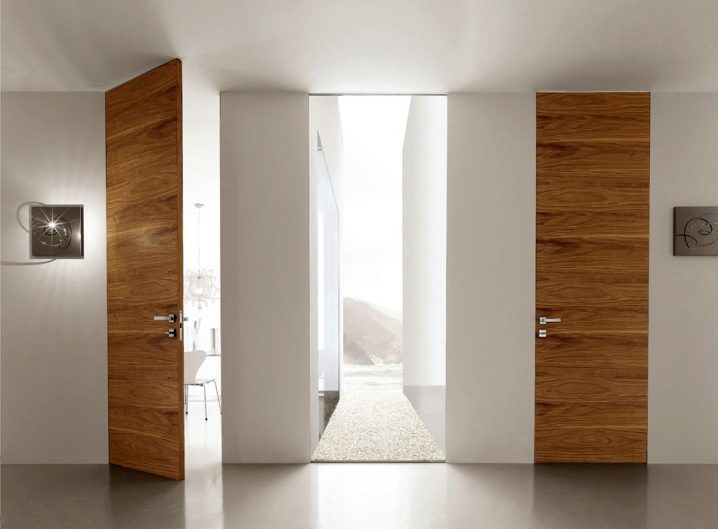 الأبواب غير القياسية ليست فقط أبوابًا ممتازة الحجم, ولكن أيضًا غير عادي في التصميم ، طريقة فتح النموذج. تجمع الأبواب الزجاجية الكاملة بين مساحة تناول الطعام والمطبخ أو غرفة النوم وغرفة الملابس. الألوان الزاهية تحول التصميمات الداخلية أحادية اللون. يختلف نوع فتح الباب أيضًا ، وقد أصبح التصميم المنزلق أو القماش المخفي بدون صندوق وأشرطة بلاتس بلون الجدار شائعًا مؤخرًا.