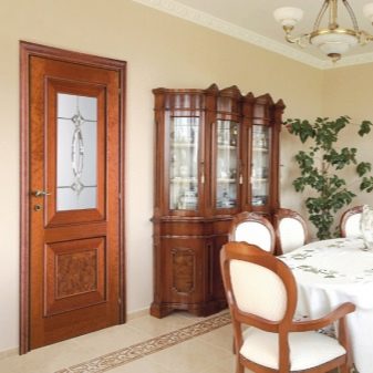 - “ميمينو” – أوراق باب فريدة من نوعها على طراز فن الآرت نوفو مع لمسة نهائية بارزة في لوحة الألوان القياسية الكلاسيكية من خشب النخبة. تبدو قشرة البلوط مع إدخالات زجاجية أنيقة ومكلفة.