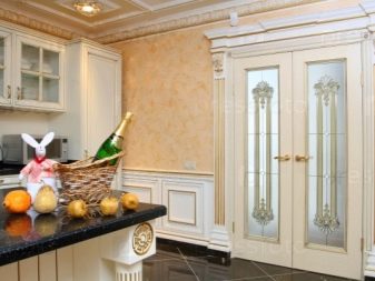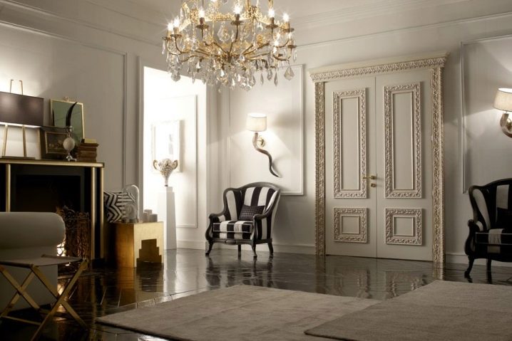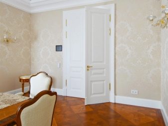 من أجل التأكيد على كل تطور الغرفة ، يوصي المصممون والمصممون باختيار الأبواب الخشبية الصلبة ذات الأوراق المزدوجة ، لأن الأبواب ذات الضلفة الواحدة لا تبدو فاخرة جدًا..