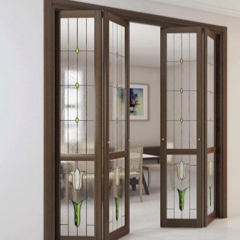 تحتوي هذه الأبواب على أدلة وشارات خاصة ، عادة ما يكون هناك العديد منها. عند الفتح ، يتم طي هذه المنتجات مثل الأكورديون أو الكتاب. سيتم توجيه حركة اللوحات نفسها في اتجاه السكة..