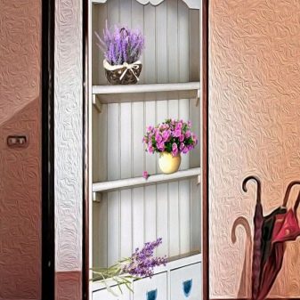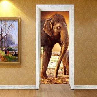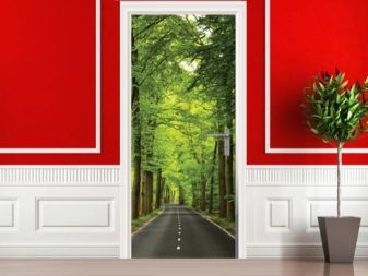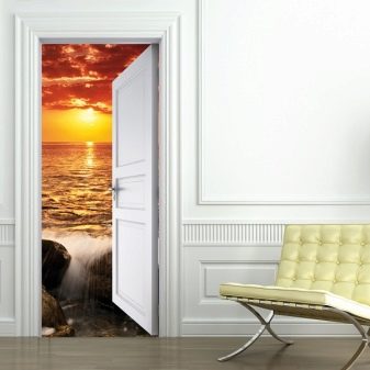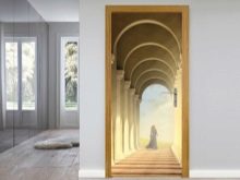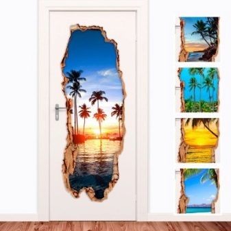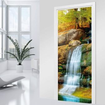 يمكن تطبيق هذه السمات في غرف مختلفة ، ولكن في نفس الوقت يجب أن تكون متسقة مع أسلوبه. يمكن أن تكون الملصقات استمرارًا للديكور أو إضافة متناغمة إليه. لذا ، فإن موضوع المناظر الطبيعية على باب المطبخ أو شلال على باب الحمام لن يسعد العين فحسب ، بل سيشجعك أيضًا..