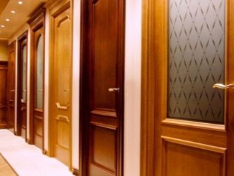 - منتجات الخشب الطبيعي. مثل هذه النماذج لا تخرج أبدًا عن الموضة ودائمًا ما تكون ذات صلة. يتم استخدام البلوط والصنوبر والزان والزيزفون والقيقب والألدر في الإنتاج. الخشب صديق للبيئة وممتع من الناحية الجمالية. المنتجات الخشبية لها خصائص أداء ممتازة. جذبت التصاميم القوية والتصميمات متعددة الاستخدامات المشترين لسنوات عديدة. تعمل هذه الأبواب لفترة طويلة ، ولها خصائص عزل عالية للصوت ، تتحد بانسجام مع الزجاج والمعدن. عيوب الخشب هي الرطوبة ، القابلية للاشتعال ، الشقوق ، العقد وجيوب الراتنج. لكن تقنيات النجارة الحديثة تجعل من الممكن تحييد هذه العيوب وإنتاج منتجات عالية الجودة وجميلة..