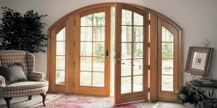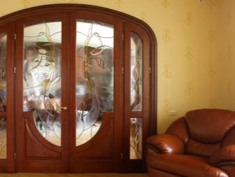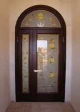 قماش نصف دائري مناسب تمامًا للمطبخ. إنه لأمر جيد إذا كان يحتوي على ملحقات زجاجية أو فسيفساء. لكن يمكن أن يكون باب الشرفة زجاجيًا بالكامل في إطار خشبي.على سبيل المثال ، في غرفة المعيشة الكبيرة ، من الأفضل اختيار باب زجاجي. في هذه الحالة ، يجب ألا يشغل الزجاج اللوحة بأكملها ، وإلا فإن خطر الإصابة يزداد..