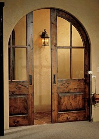عند اختيار الأبواب المقوسة ، عليك أولاً التأكد من أن المنزل يحتوي على سقوف عالية بما فيه الكفاية ومساحة كبيرة. توفر الأبواب المتأرجحة وذات الضلفتين مساحة واسعة للفتح والإغلاق المريحين.