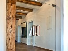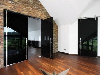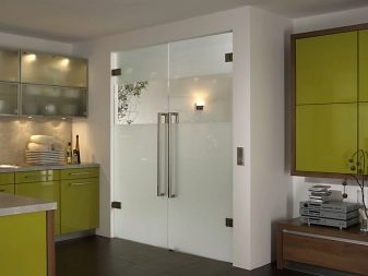 الأبواب الزجاجية المتأرجحة مصنوعة من زجاج مقسى متين بسماكة تزيد عن 10 مم ، والتي ، في حالة تلفها ، تتكسر إلى شظايا صغيرة لا تشكل خطورة على الأشخاص. ثم يتم تغطيتها بفيلم مقاوم للصدمات. ميزة هذه الأبواب هي مقاومتها لكل من الإجهاد الميكانيكي ودرجات الحرارة القصوى. بالإضافة إلى ذلك ، تتميز اللوحات الزجاجية بخصائص مكافحة الحرائق – فهي قادرة على وقف انتشار الدخان والحريق من أجل إخلاء أطول. ومع ذلك ، فإن الوشاح ثقيلة ، مما يعني أنك لن تتمكن من تثبيتها بنفسك..
