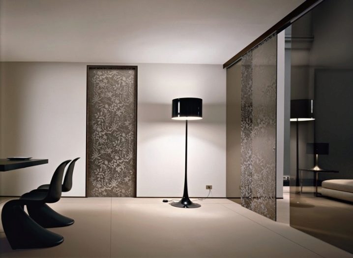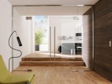 سوف يناسب عشاق بساطتها وسكان المنازل الريفية “البندولات” المصنوعة من الزجاج. بالإضافة إلى الجماليات ، فإن الميزة الواضحة لهذه الهياكل هي وفرة الضوء الناتجة وتأثير توسيع المساحة. في الوقت نفسه ، يمكنك الوصول مجانًا إلى كلا الجانبين وعنصر ديكور أنيق. يمكن تغيير شفافية الأبواب الزجاجية باستخدام أفلام التظليل.